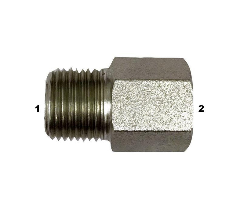 3826 | Male Pipe to Female BSPP Adapter $9.05 06MP-04MBSPP - $9.05 06MP-04MBSPP Size 1 2 3 4 5 6 7 8 9 10+ Quantity Quantity Add to cart Attributes: Material: Steel Shape: Straight Thread 1 Type: Male Pipe Thread 2 Type: Female British Pipe Parallel