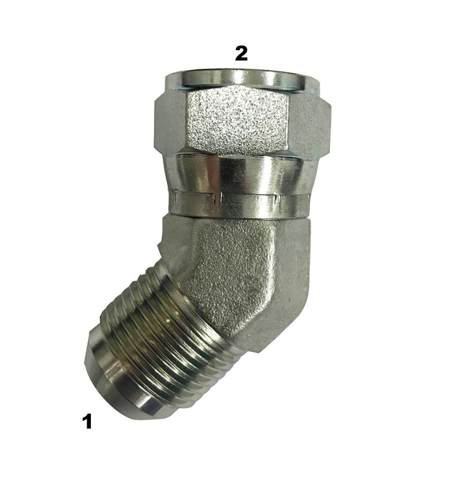 6502 | Male JIC to Female JIC Swivel 45 Degree Adapter $9.24 04MJ-04FJX - $9.24 04MJ-04FJX Size 1 2 3 4 5 6 7 8 9 10+ Quantity Quantity Add to cart Attributes: Thread 1 Type: Male JIC Compliance: SAE 070321 Thread 2 Type: Female JIC Swivel